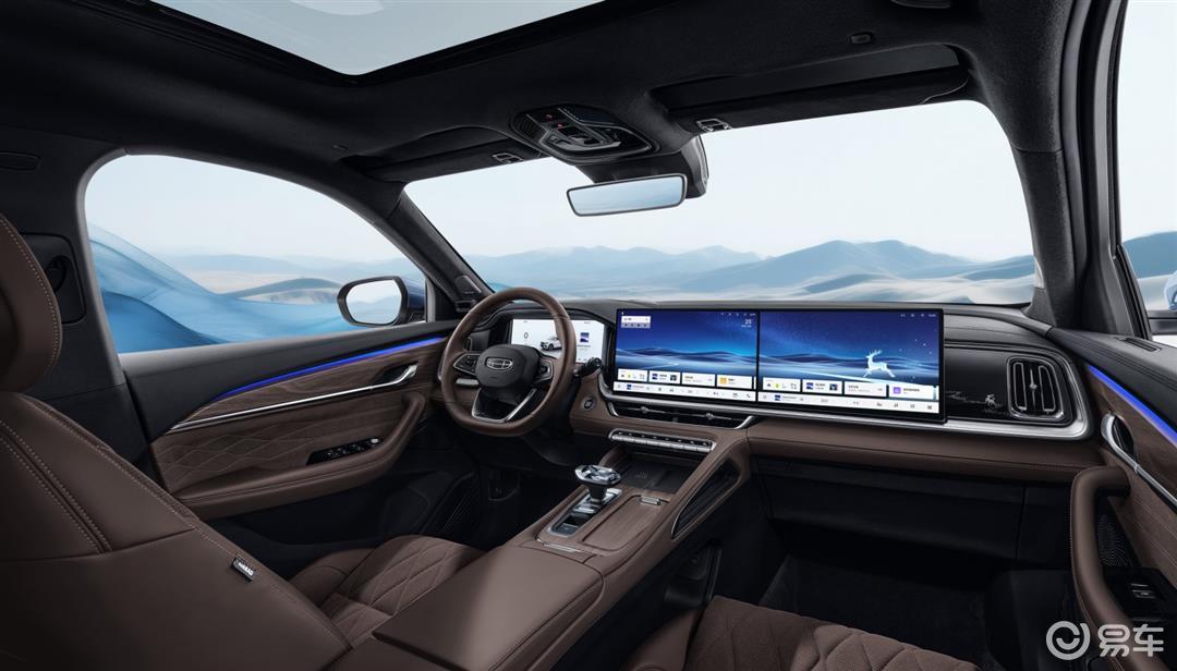 车内用料很厚道,皮质包裹搭配木纹饰板,多媒体中控屏与副驾驶娱乐屏组成的双联屏是整个内饰的亮点,两块屏幕均升级至 14.6 英寸,观感比老款车型好很多。车机加入Flyme Auto系统。基于7nm高通8155芯片的算力加持,而且还提供25.6英寸全彩HUD抬头显示。支持全面屏手势、一语即达等功能,全面兼容Flyme Link、HiCar、CarLink、CarPlay。全系标配深度融合Deepseek大模型的AI语音系统。