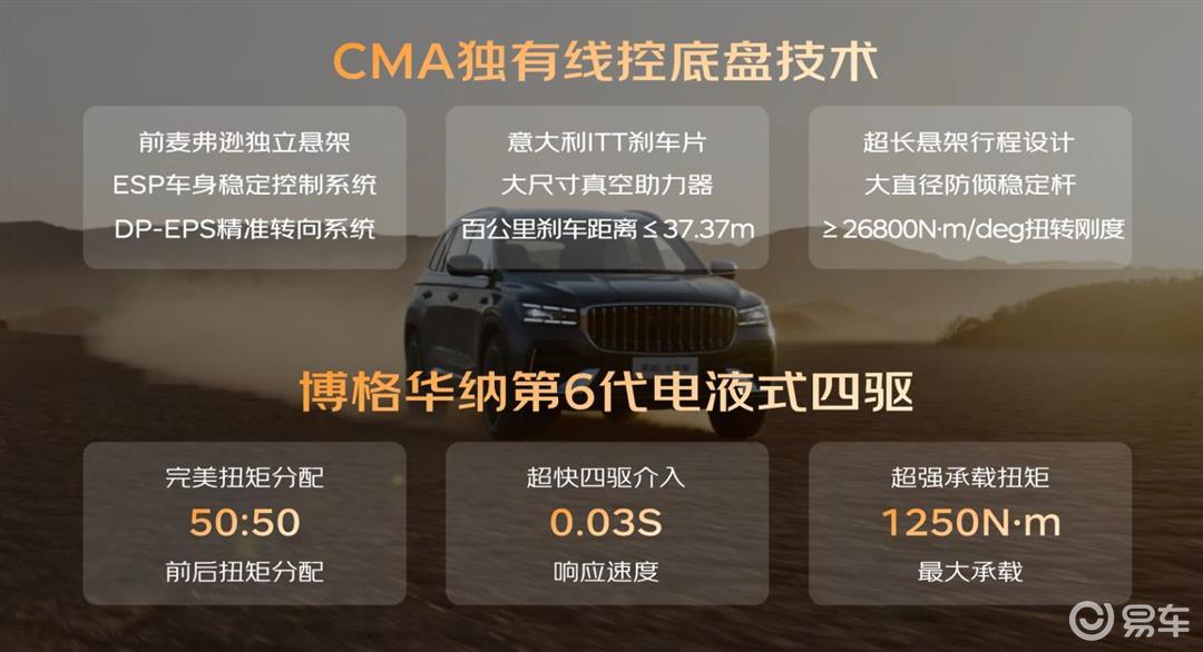 动力方面,新车将搭载2.0TD高功发动机,最大功率200kW,峰值扭矩400N·m。传动方面,匹配爱信8AT变速箱。0-100km/h加速为7.3秒,同时,东方曜系列采用CMA线控底盘技术,车辆前后配重比接近50:50。值得一提的是,搭载博格华纳第六代电液式四驱系统,0.03秒极速响应,实现50:50扭矩分配。
