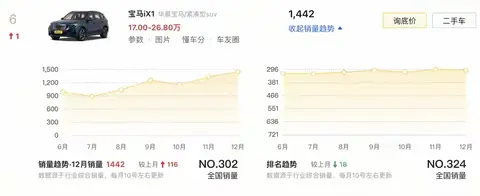 宝马iX1(图片|配置|询价)刚上市就推上热搜,22.8万的起售价比奔驰EQA便宜10万,去年12月销量却只有1442辆,连奔驰EQA的一半都不到。