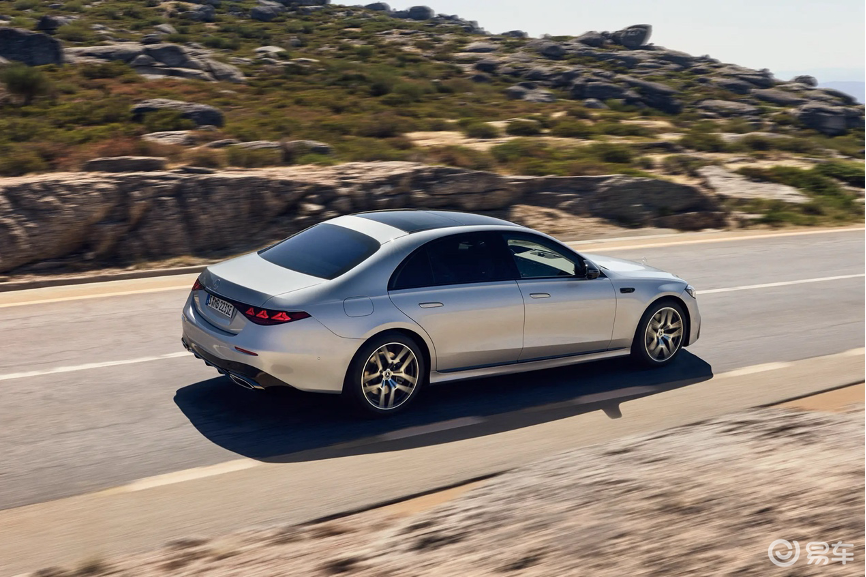 对应的,车尾的尾灯组也变成了三叉星徽的造型,从E级的两个增加到了三个。相比此前的多颗点状LED发光单元,少了一些质感和科技感。