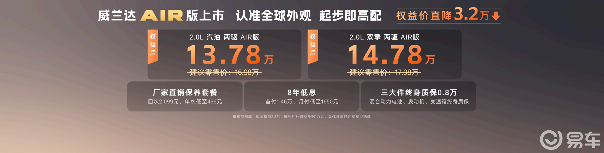 - 献大礼!13.78万元起,全新换代威兰达AIR版正式推出