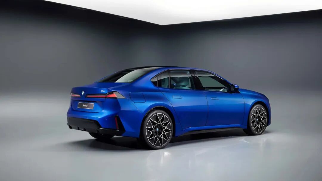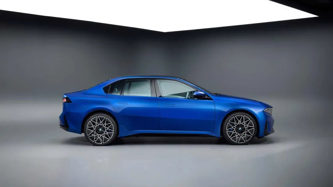 车身侧面采用短前悬、长轴距布局,搭配隐藏式门把手与流畅溜背线条。新车新增“M Le Castellet Blue”专属蓝色金属漆,配备21英寸M运动轮圈。