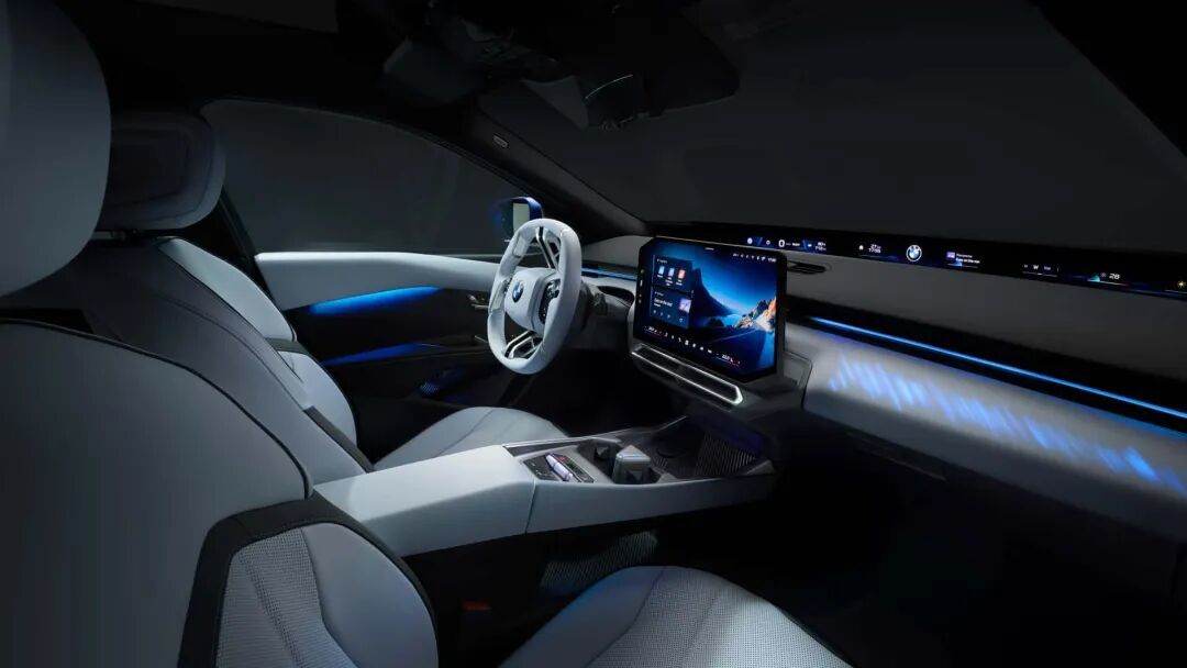 内饰与交互是核心升级点,首次搭载全景iDrive智能座舱系统。取消传统仪表盘,取而代之的是与挡风玻璃融合的视平线全景显示系统,配合3D抬头显示,可将行车信息以4K画质投射于驾驶者视野。中控区域配备17.9英寸无边框悬浮屏,搭配专属多功能方向盘与BMW Interaction Bar互动光条,内饰采用白灰撞色搭配,配备三区自动空调、Harman Kardon音响系统,兼顾科技感与舒适性。