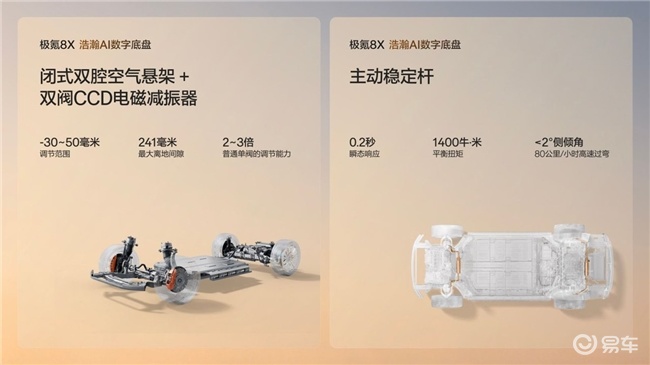 极氪8X不仅重新定义了性能边界,更用极致安全为高性能托底。发布会上,极氪8X成功挑战行业首次单车七重连环安全碰撞,其“浩瀚安全盔甲”车身采用一体式热成型双门环+双金箍棒设计,主动稳定杆可在碰撞前0.7秒抬升车身,配合G-AEB通用障碍物识别刹停和G-AES连续自动避让功能,让这台中大型SUV在130km/h高速下依然能“能刹能绕、边刹边绕”。此外,闭式双腔空气悬架、双阀CCD减振器和主动稳定杆的协同,赋予其超强抗侧翻能力。这些硬核指标改写了中大型SUV性能排名中关于“安全冗余”的评价维度。