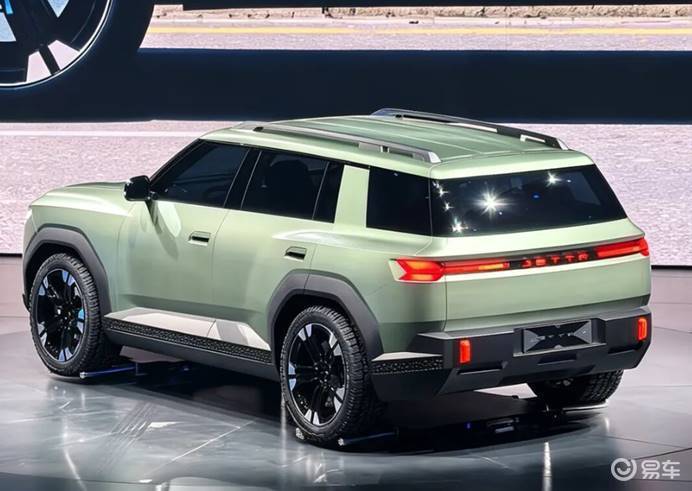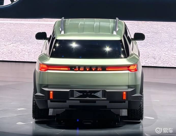 车尾的层次感很丰富。贯穿式尾灯,发光的Logo,厚重的下包围跟车身同色,都是那抹墨蓝绿,底部却嵌了一片香槟金的金属饰板。未来感、机甲感,还有那么一点不易察觉的闷骚,全在这一抹跳色里收住了。