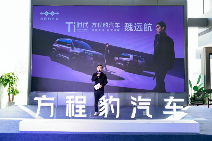 活动现场人气拉满,氛围全程火热。方程豹内蒙大区运营经理致辞,直白地阐释了方程豹品牌的技术初心:所谓“Ti时代”,从来不是把技术做成高高在上的噱头,“5分钟充好、9分钟充饱,“零下30度只多3分钟”不是实验室里的冰冷数据,是每一位车主日常能看得见摸得着用得上的,实打实的补能体验。