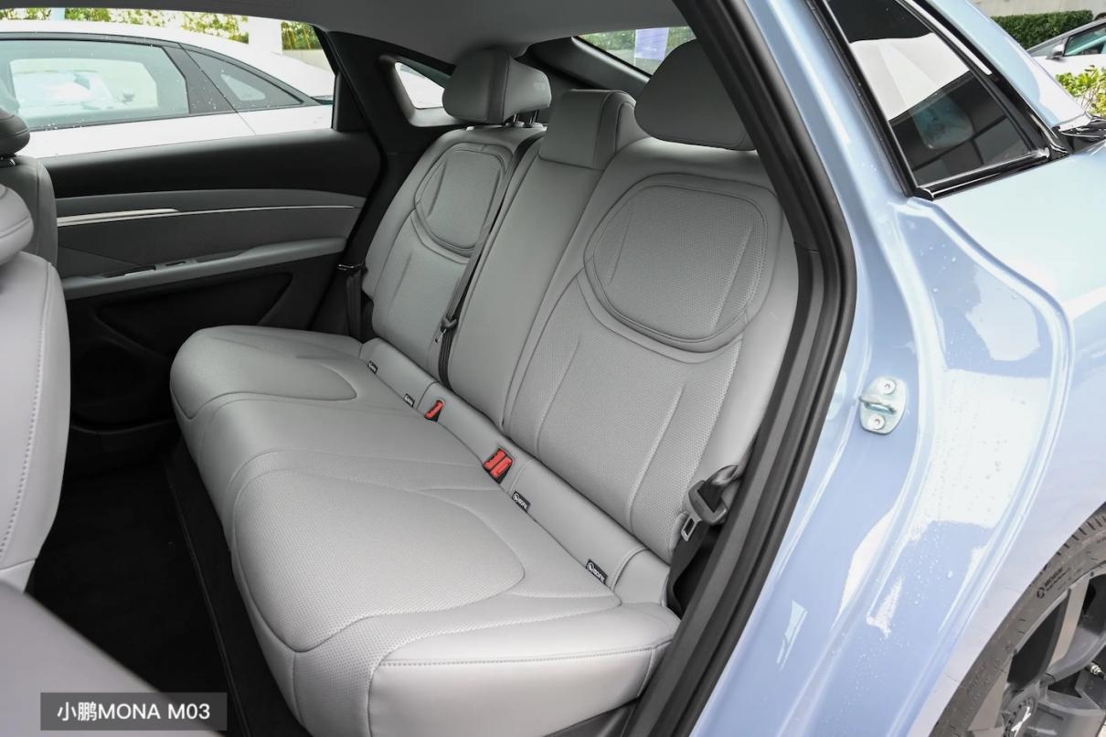 在这样的基础上,小鹏M03除了说后排头顶因掀背而略有下降外,它前后的腿部纵深足够宽敞,而180cm以下的乘客在后排其实也不会压抑,只是满员的中间座位会稍显紧张些。