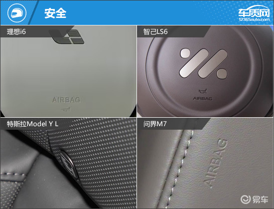 安全配置方面,四款车的基础安全配置悉数配备,但在部分安全配置方面略有不同。被动安全上,智己LS6缺失了后排侧气囊和前排中间气囊,表现一般。主动安全上,智己LS6扳回一城,不仅有DOW开门预警、后方碰撞预警等配置,还独享防侧翻系统;相反特斯拉Model Y L的主动安全配置有明显短板,上述三种功能均未配备。