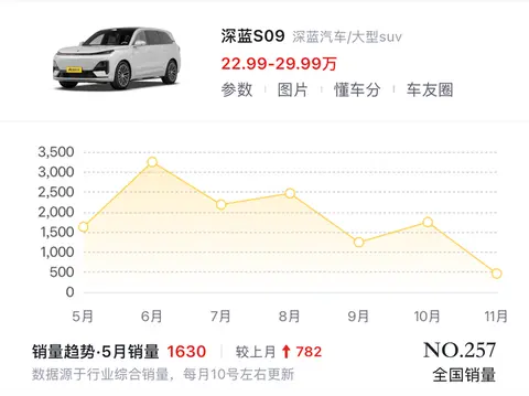 - 深蓝S09,11月销量创年内新低