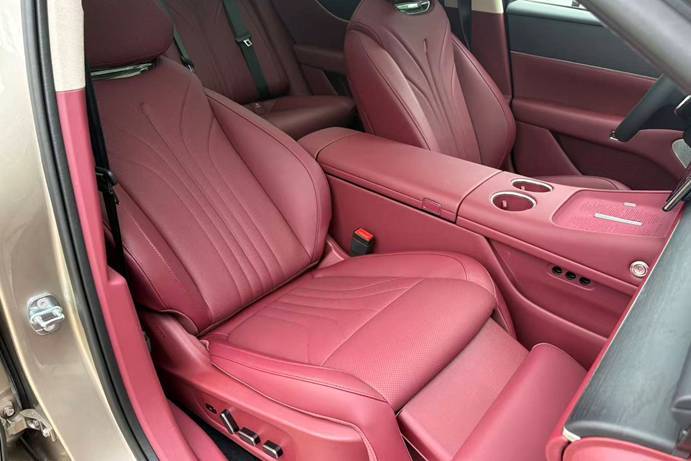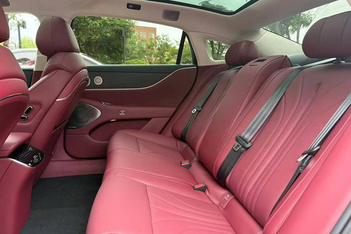 舒适配置方面,新车前排和后排座椅均提供通风/加热/按摩功能。后排空间宽敞,可轻松翘起二郎腿,为后排乘客提供了不错的舒适性,并且靠背角度还支持电动调节。另外,全车配备4区独立空调系统,每个座位都能单独控制空调开闭、风量与温度,照顾到每一位乘客的体感需求。