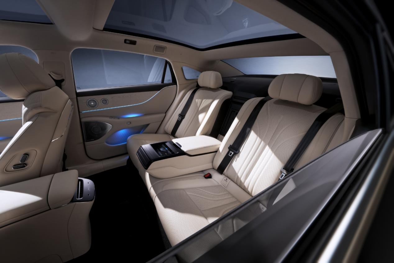 岚图追光L拥有5125*1985*1505mm的车身尺寸与3010mm轴距,这个尺寸和56E们处于一个水平线。不过岚图追光L还有着超过56E的车内空间表现,得房率高达89.4%,前排脚部到后排臀部的实际乘坐空间为1940mm,这也是目前中大型豪华轿车中的拔尖水平。